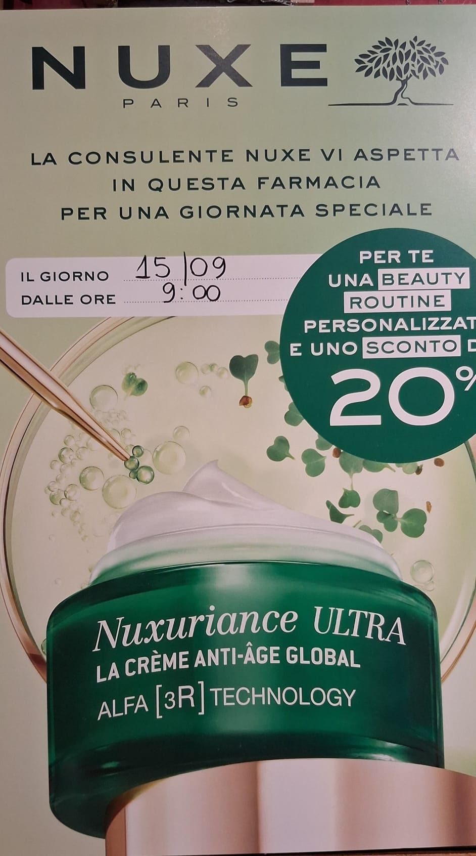 Consulenze gratuite di dermocosmesi + 20% di sconto sui prodotti NUXE non in offerta