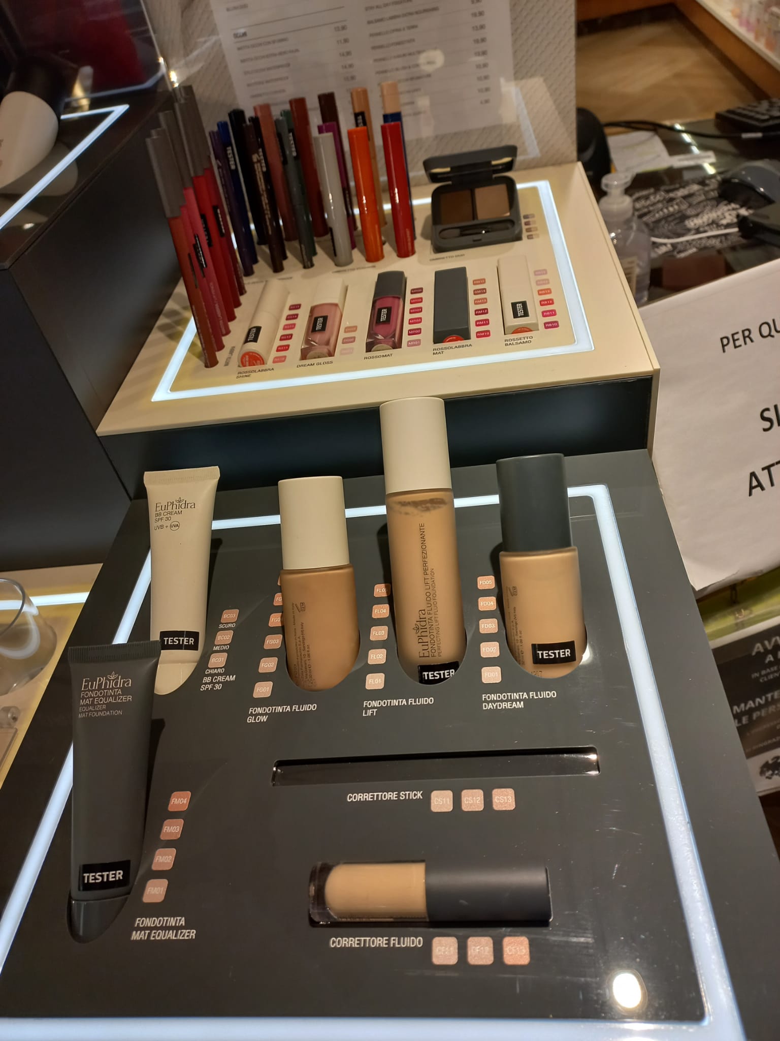 - fondotinta e correttori con azione idratante, anti-età, camouflage e protettiva, con filtri UV;